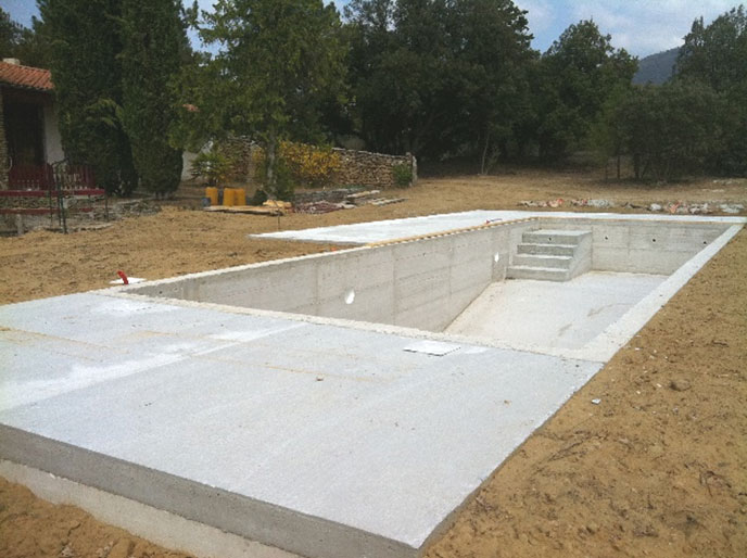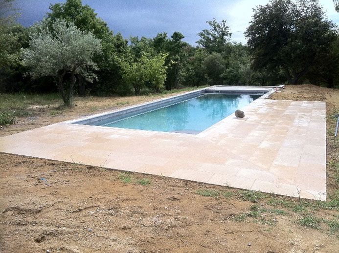 Réalisation d’une piscine de 11 x 4 avec volet roulant, finition enduit de couleur